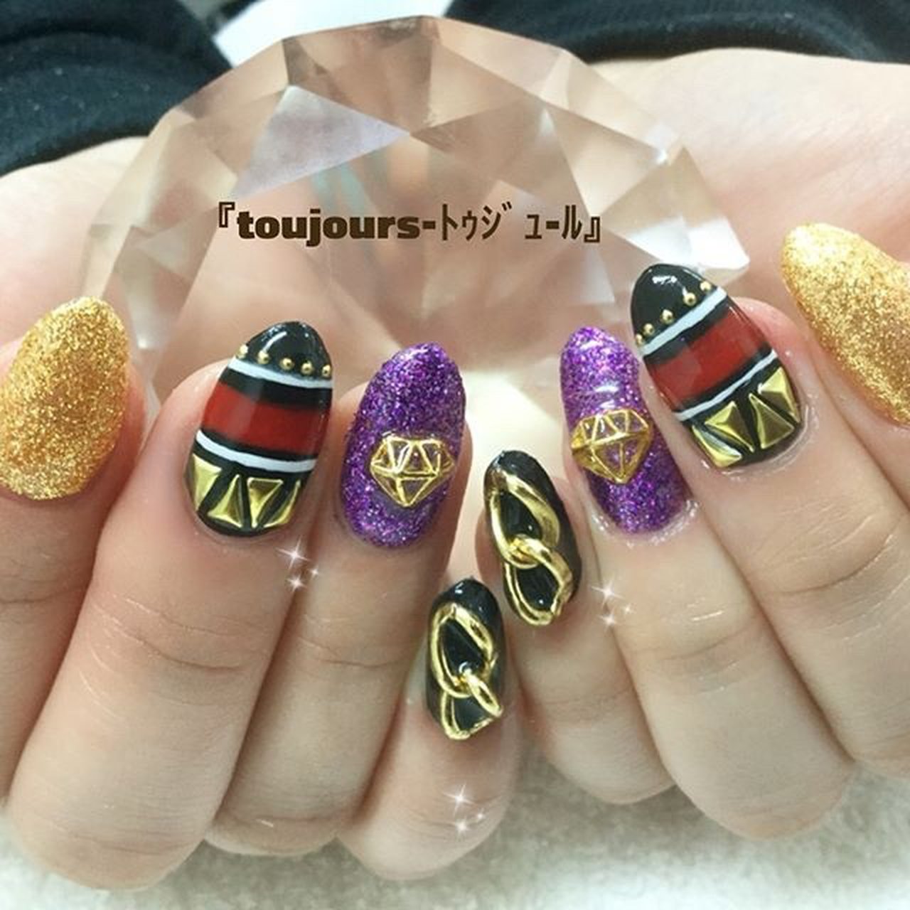 オールシーズン ハンド ラメ ビジュー チェーン 京都市右京区太秦ネイルサロン Toujours トゥジュール のネイル デザイン No ネイルブック